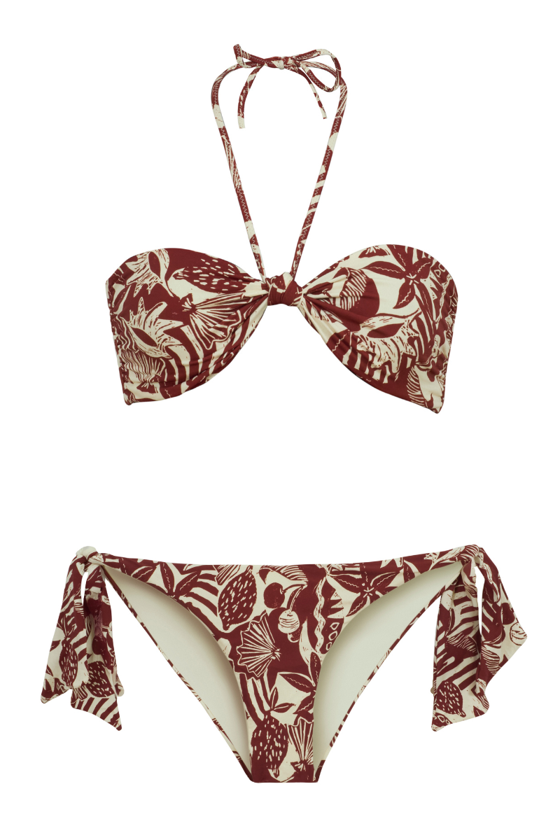 Our Luz Top is a modern bandeau with a bold center knot, featuring a halter neck tie and side boning for added support. Designed to tie at the back for a secure and flattering fit. It has removable soft cups. he fabric is from Italy. Made in Colombia. 86% Polyamide 14% Elastane